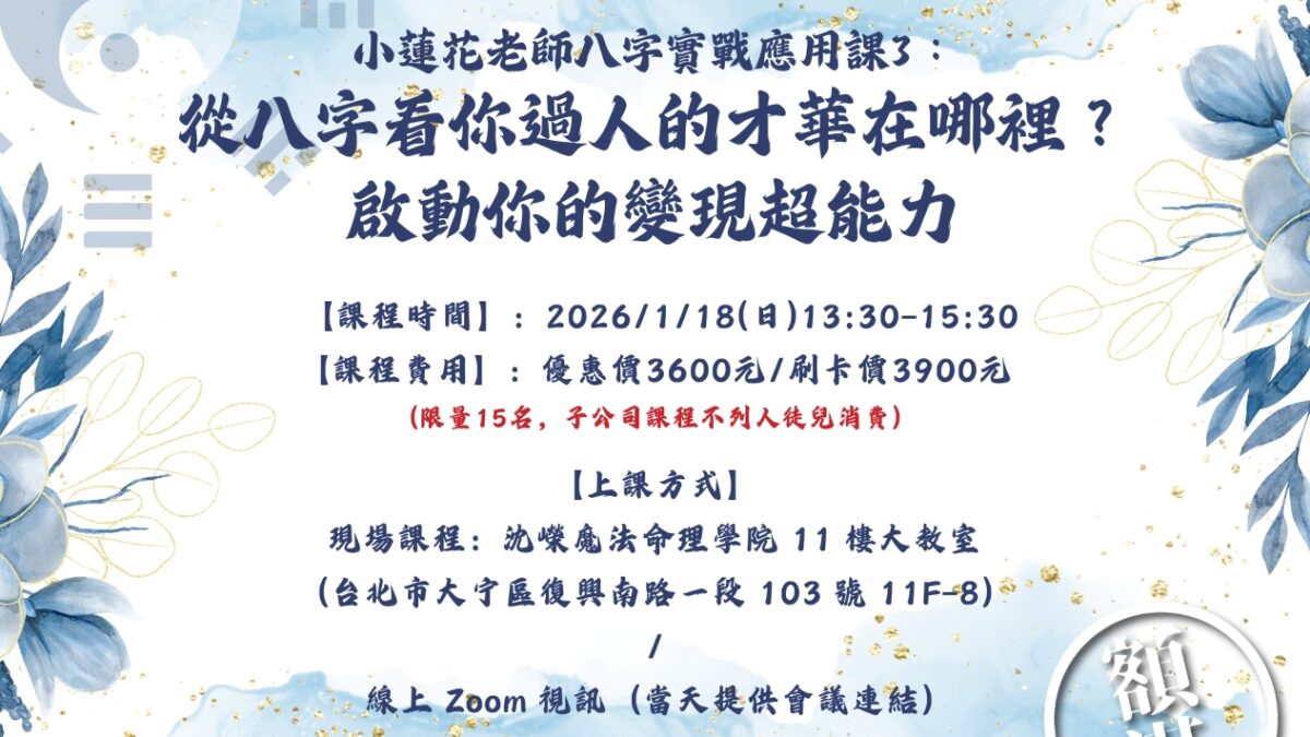 小蓮花老師八字實戰應用課3:從八字看你過人的才華在哪裡?啟動你的變現超能力